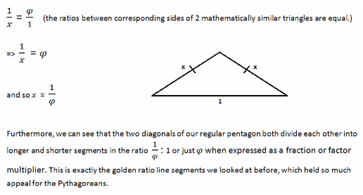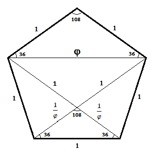Now to examine a regular 5-sided pentagon's relationship to the golden ratio: